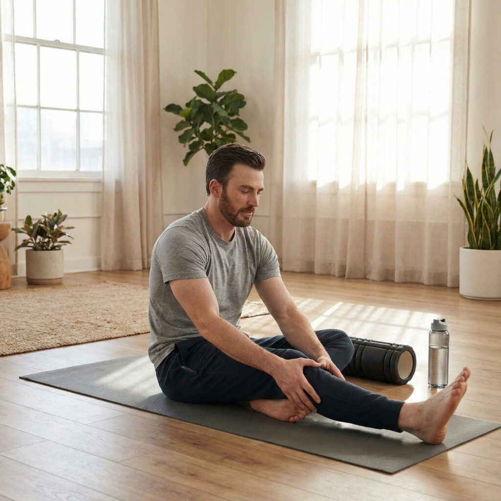A lesser-discussed but critical component of Chris Evans’s fitness routine is recovery. He prioritizes core stability, mobility work, and rest days to maintain performance over time.