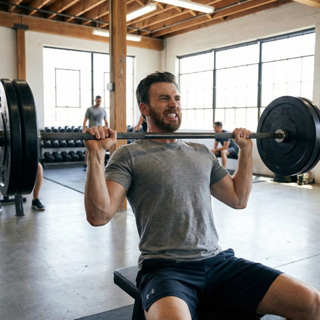 Strength training plays a central role in Chris Evans’s fitness routine. His workouts emphasize functional strength and full-body balance instead of isolated muscle development.